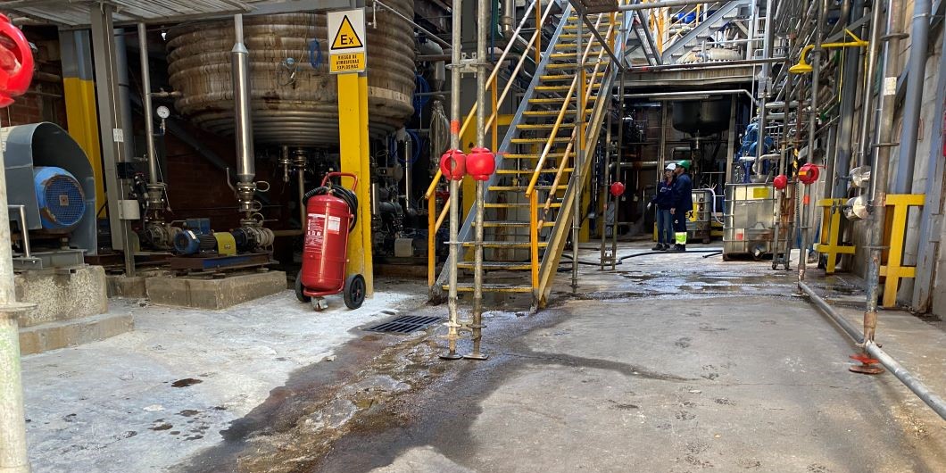 To combat this complex challenge, the Stonhard Spain team proposed a comprehensive solution aimed at safeguarding the floor against deterioration, ensuring a clean, easily maintainable surface, all while meeting static control specifications for this ATEX zone.Stonhard’s highly experienced installation team addressed this by installing 200m2 of a strategic combination of Stonhard products: Stonset TG6, Stonclad UT Light and Stonchem 821, specifically tailored for the esters zone of the production facility.